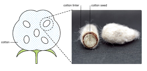 Cupro fiber is regenerated from Cottonlinter, surround around cotton seed.